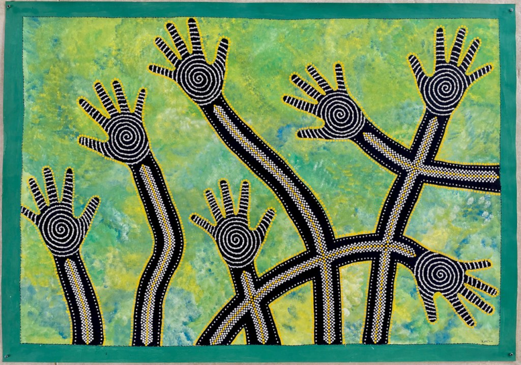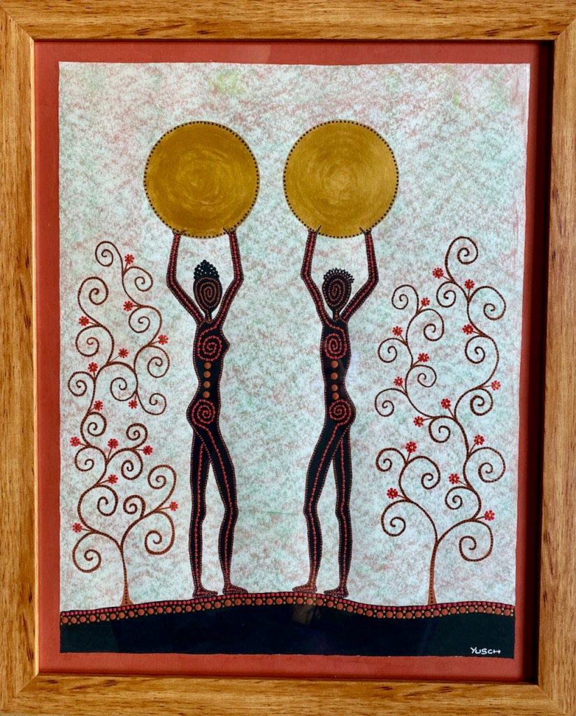 Meine Interpretation von diesem Bild? Es war für mich wie ein Erwachen der künstlerischen Kraft, ich habe den Mut in mir gefunden mich auf großer Fläche zu entfalten. Also ein großes HALLO aus meinem Inneren.