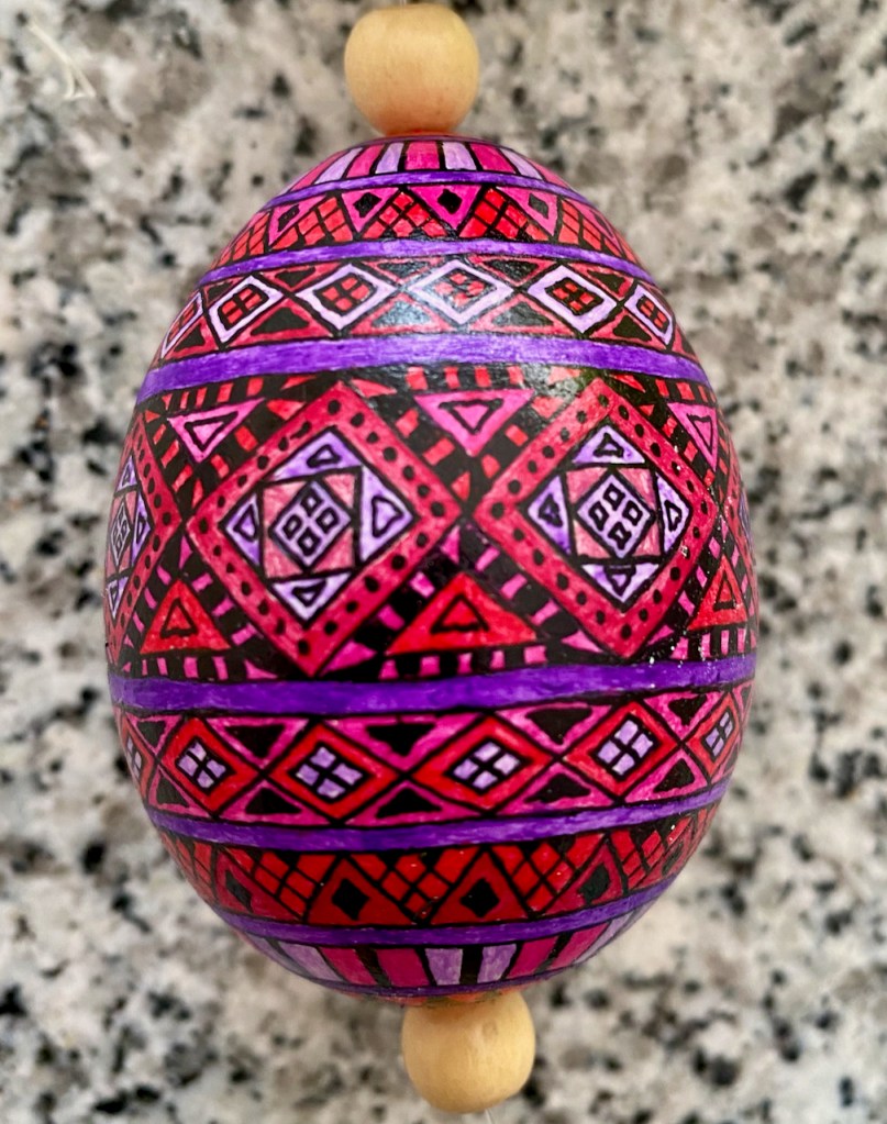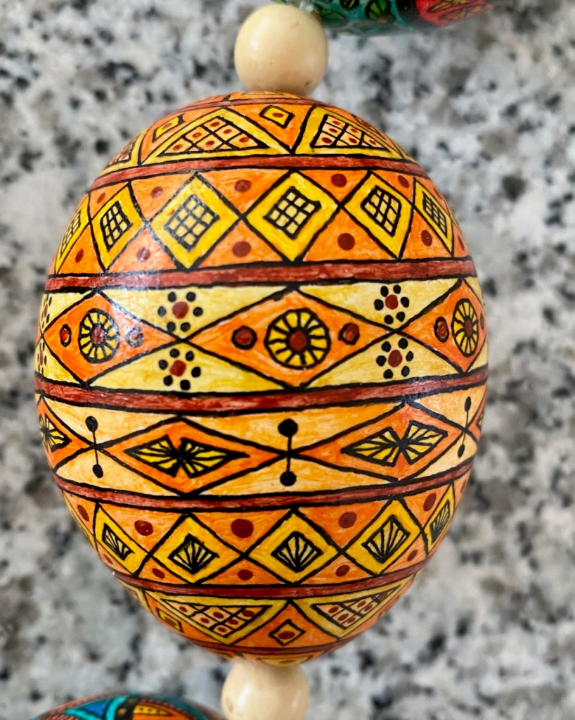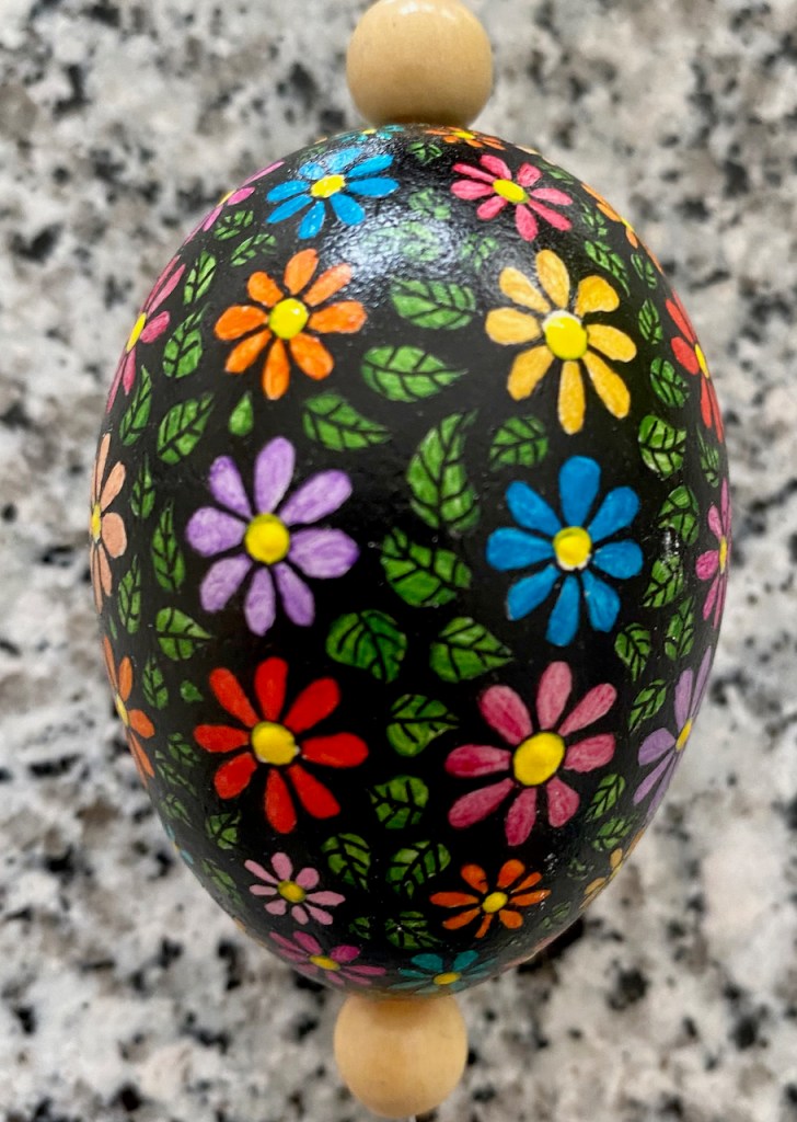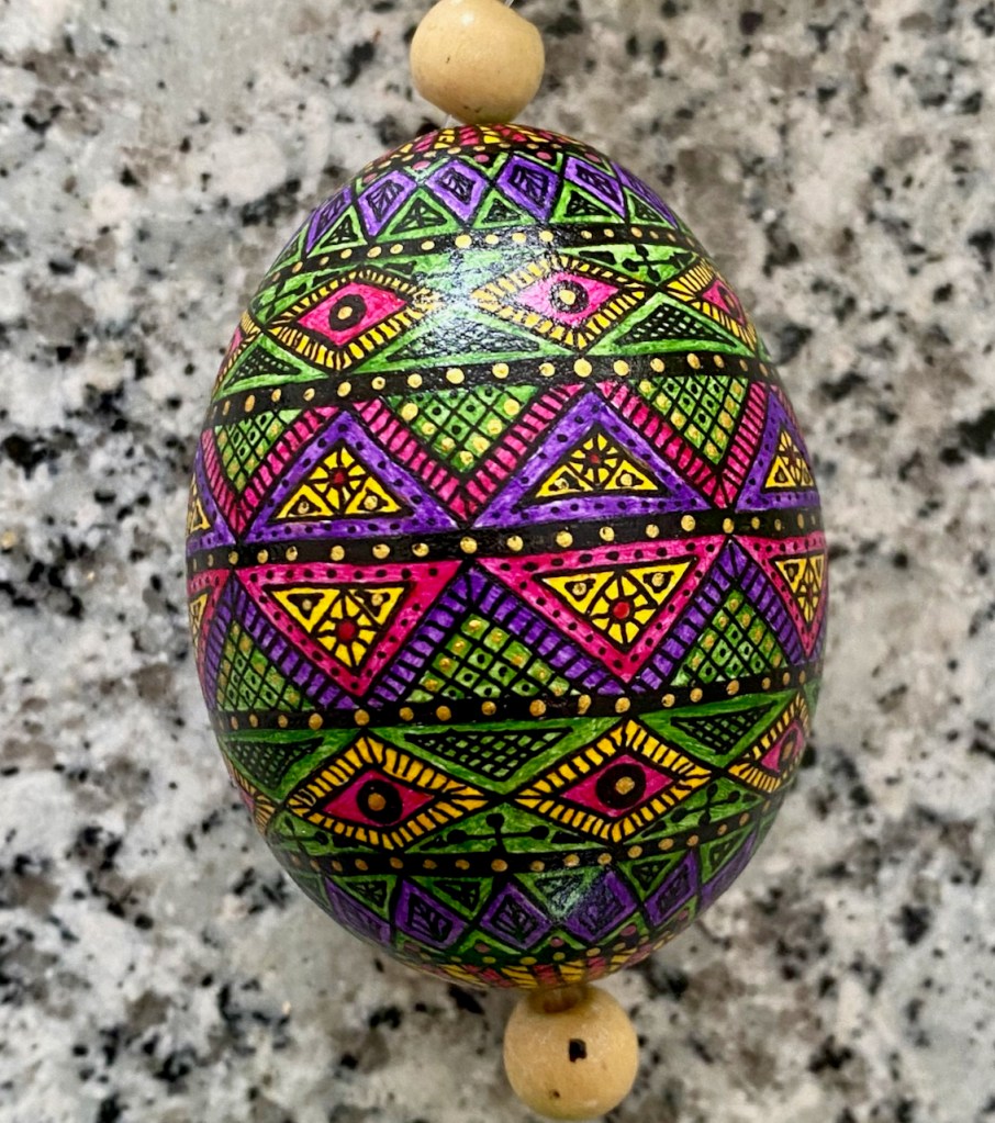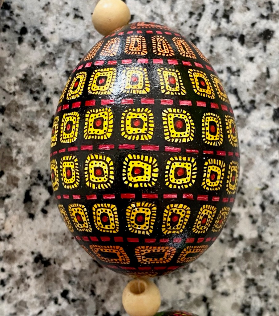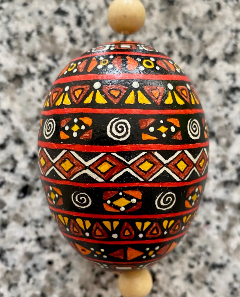 Die Maltechnik, die ich am Anfang für die Eier benutzt habe, hatte ich ja schon zu Genüge auf Papier geübt. Bei jedem Ei, das ich bemalt habe, kamen mir neue Ideen, und so wurden es an die 50 Stück